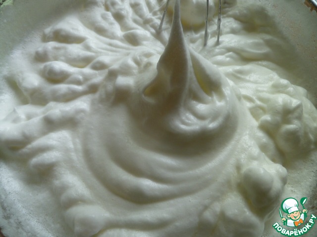 Для начала нужно взбить в крепкую пену охлажденные белки.