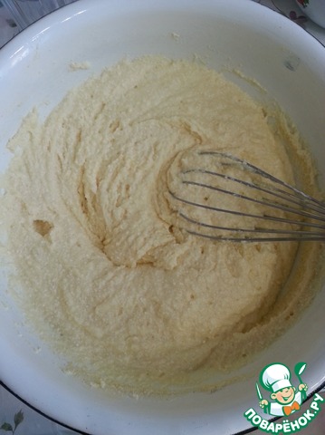 Добавить яйца по одному, протёртый через сито творог, ванильный сахар, крупу манную Мистраль, разрыхлитель.