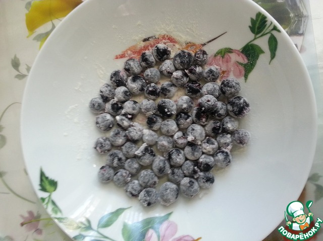 Ягоду разморозить (у меня смородина), обвалять в небольшом количестве муки.
