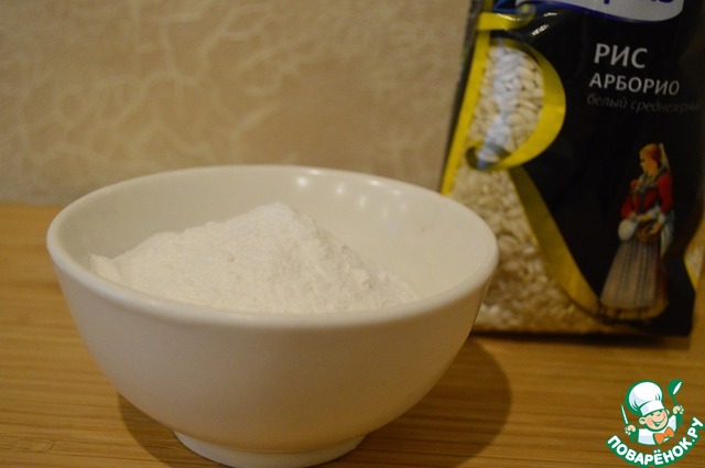 Приготовьте рисовую муку. Рис желательно брать круглый, в нём больше крахмала, а значит клейкости, подойдет и самый не дорогой. Рис необходимо тщательно промыть от мути, а затем замочить в тёплой (не горячей!) воде на 3-5 часов. Замоченный на достаточное время рис становится мягким и хрупким, его гораздо легче и проще измельчить. По истечении времени с риса слить воду, расстелить его на полотенце тонким слоем, чтобы ушла лишняя влага. Но пересушивать рис не стоит. После просушки рис кладётся по частям в измельчитель и перемалывается в муку. Сначала нажимать короткими пульсациями, чтобы рис измельчился до состояния мелких гранул, затем на несколько длинный период, пока текстура не приобретёт порошкообразную форму. Полученная рисовая мука бывает влажной. Её надо просушить. Для этого муку переложить в широкую толстостенную сковороду и постоянно помешивая, продержать на огне до полного выпаривания влаги. Делать это надо на медленном огне и следить, чтобы мука не изменилась в цвете. Она должна остаться белой. Просушенную муку снять с огня, но ещё какое-то время продолжать помешивать, пока сковорода не остынет. Остывшую муку теперь следует просеять через сито. Оставшиеся в сите крупные гранулы вновь перемолоть в измельчителе. Вот и всё. Готовить впрок такую муку не стоит, она быстро портится и плесневеет. Хранить её следует в холодильнике, в плотно закрытой банке.