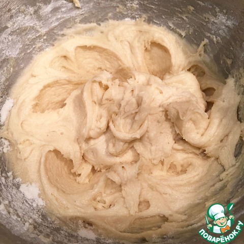 Добавляем муку, соду, разрыхлитель и тщательно вымешиваем! У нас получиться вот такая достаточно густая консистенция.
