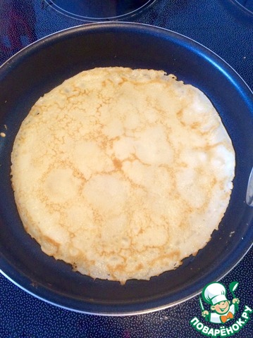 Начинаем печь. Чем тоньше блинчики, тем вкуснее, я блинчики не переворачиваю, пропекаю с одной стороны.