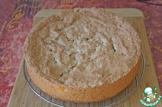 Выпекать в заранее разогретой до 200*C духовке в течение 30-40 минут до светло-коричневого цвета. Готовность проверить деревянной шпажкой. Остудить пирог прямо в форме в течение 10-15 минут. Затем очень осторожно, буквально не дыша, выложить на кухонную решетку, он необыкновенно нежный и воздушный.