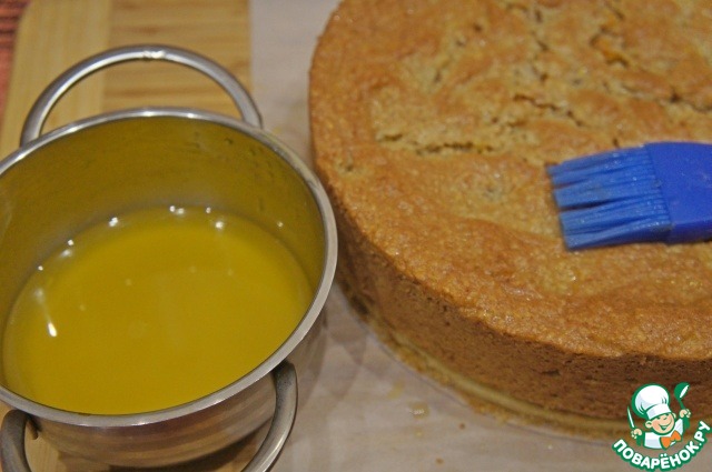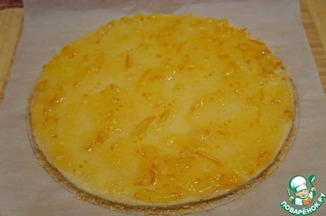 Обильно смазать корж апельсиновым конфитюром, сверху аккуратно уложить миндально-тыквенный корж.
