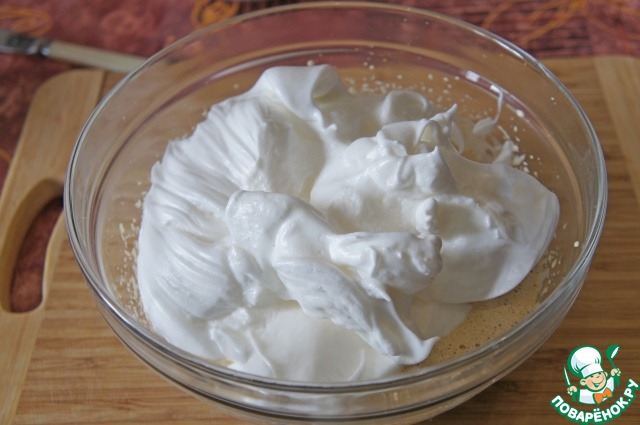 Белки взбить в устойчивую пену, постепенно добавляя оставшийся сахар.