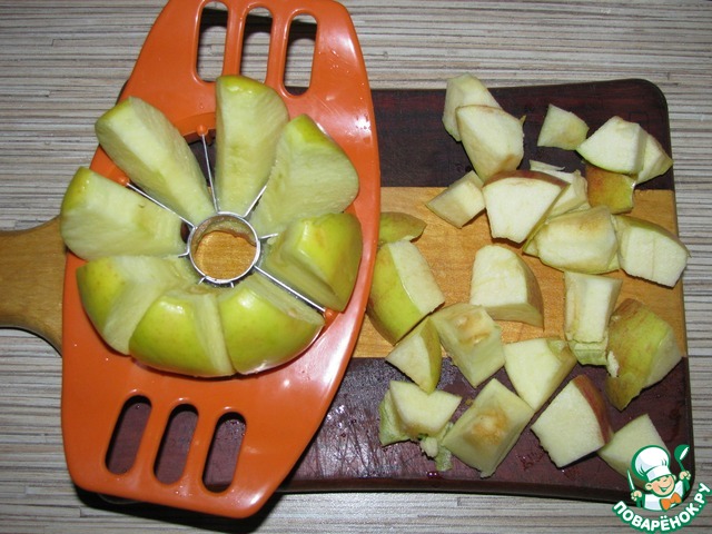Яблоки вымыть, удалить сердцевину, нарезать кубиками.