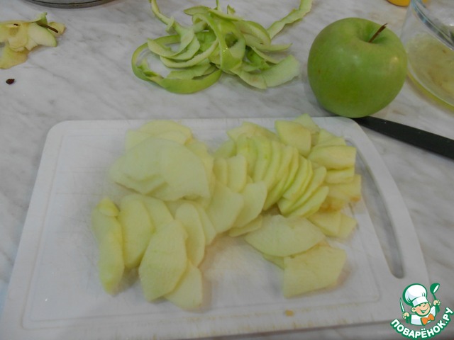 Выкладываем яблоки в форму, смазанную сливочным маслом. Если форма не силиконовая, то помимо масла необходимо обсыпать ее мукой или манной крупой