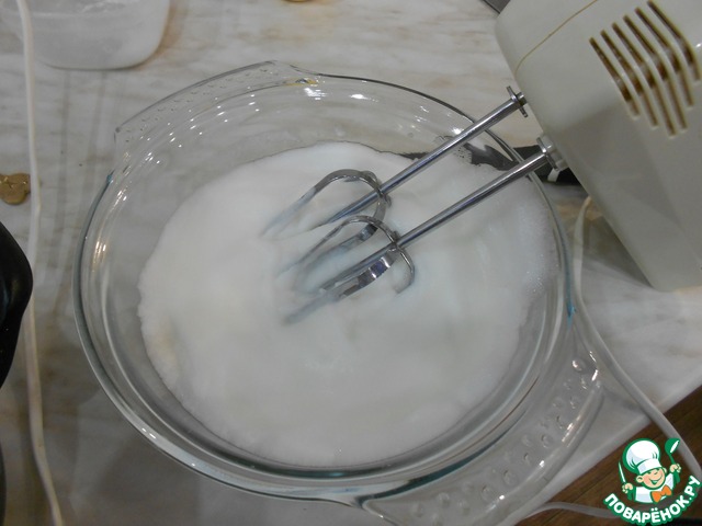 Взбиваем белки в пену, до так называемых "мягких пиков"