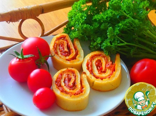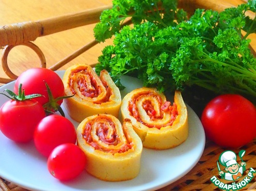 На тесто выложить начинку и свернуть рулет. Прижать рулет руками, он должен быть плотным.