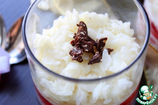 На дно креманки или бокала кладем по 1 ст. л. готовой каши, сверху натираем шоколад.