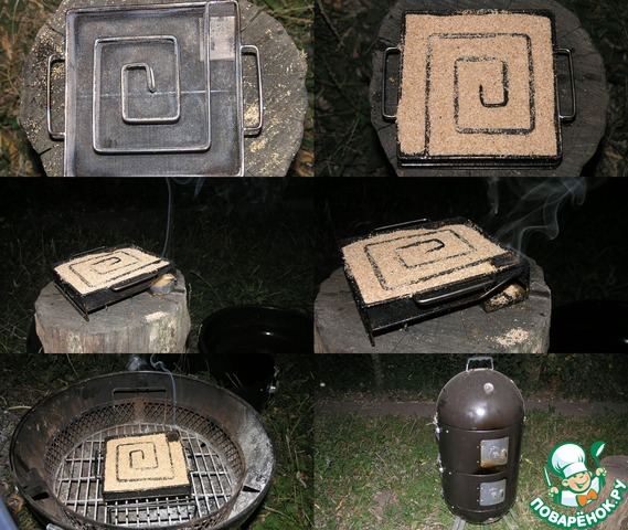 Выкладываем кабачки на решетку коптильни и коптим 6-12 часов холодным дымом. Температура дыма не выше 30-ти градусов.