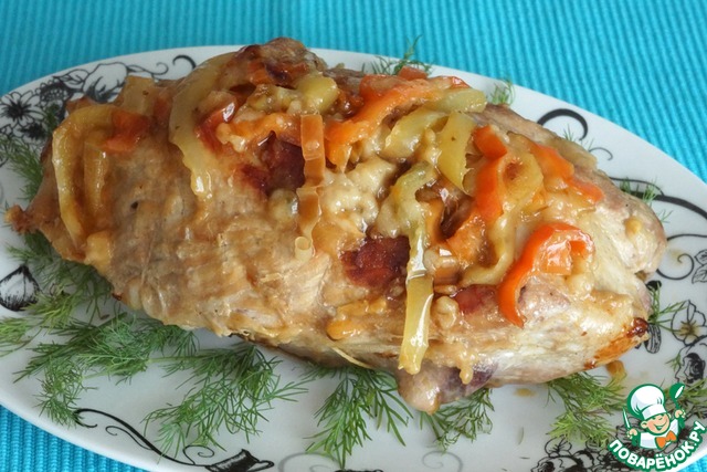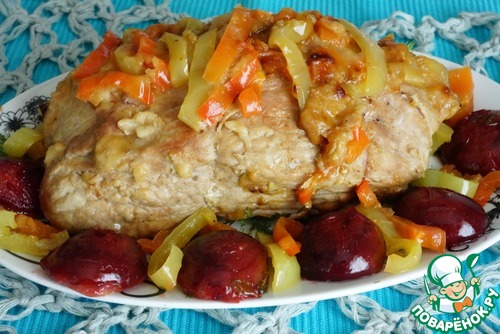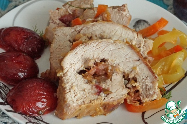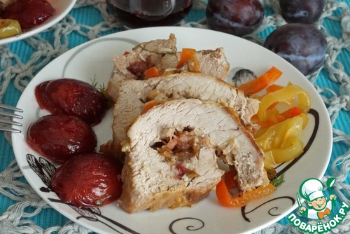 | Многие уже наверно привыкли к сочетанию мясо+фрукты, я очень люблю такие вкусные сочетания и поэтому с удовольствием приготовила этот вкусный рулет. Очень рекомендую, получилось вкусно, сочно, нежно. |