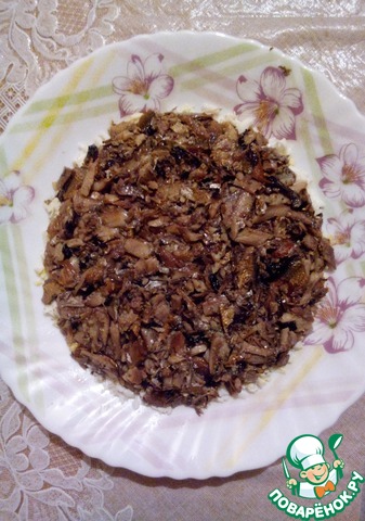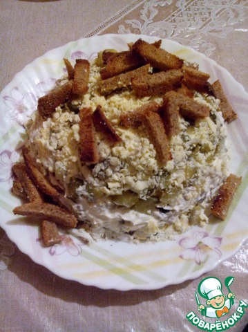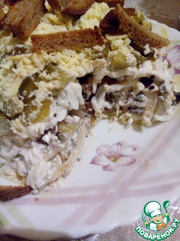 Майонез, грибы, сухарики.