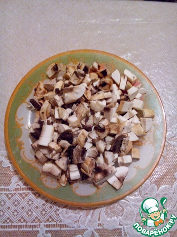 Помыть, нарезать грибы кубиками.
