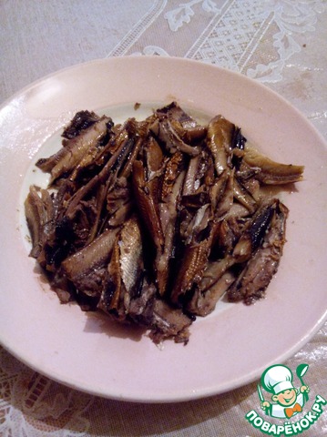 Из шпрот вылить масло (еще я убрала хребты).