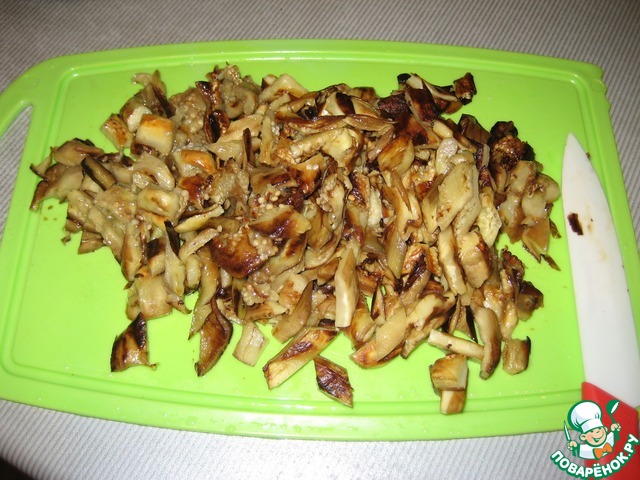 Баклажаны избавляем от горечи. Я их нарезаю кружками или полосками, обильно засыпаю крупной солью, оставляю примерно на 30 минут, а потом промываю. Далее обжариваю на растительном масле до готовности, слегка подсушиваю на бумажном полотенце, чтобы избавиться от лишнего масла