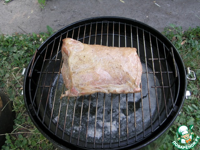 Подготавливаем коптильню и закладываем мясо. Коптим 120-140 минут.