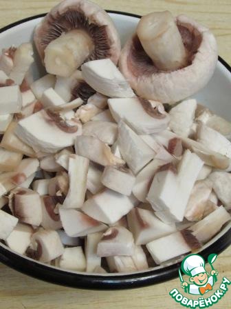 Грибы вымыть, протереть, нарезать средними кубиками.
