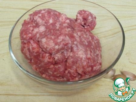 Фарш посолить, поперчить и добавить чеснок, пропущенный через пресс.