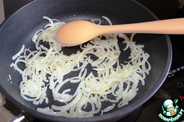 На сковороде, с разогретым маслом, обжариваем лук до легкого золотистого цвета.