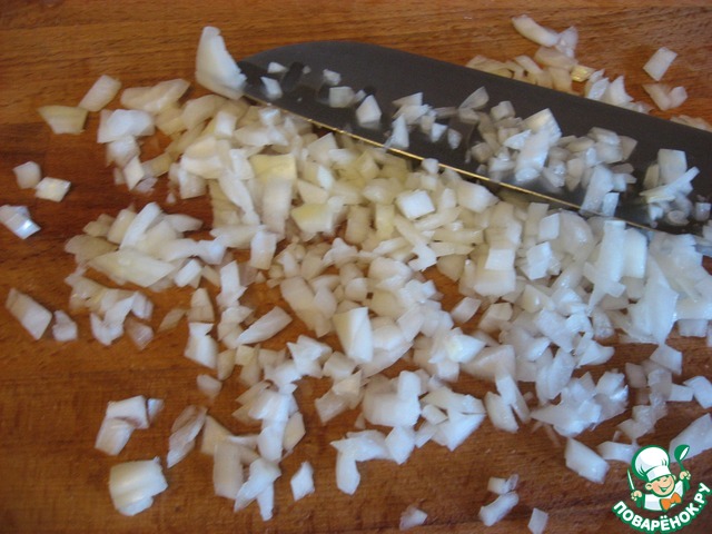 Луковицу нарезаем и обжариваем на масле до легкого золотистого цвета