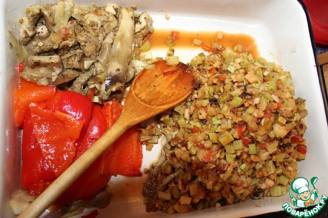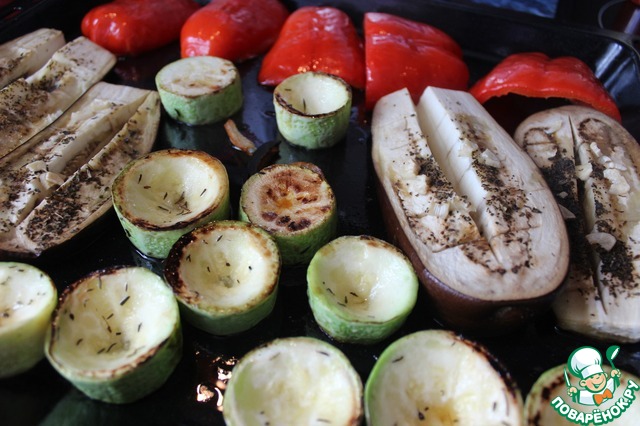 Доводим до готовности овощи в жарочном шкафу и даем остыть.