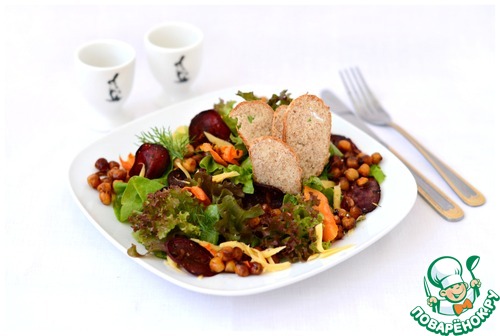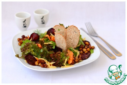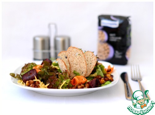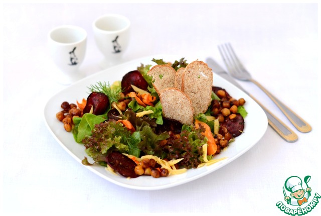 | Очень вкусный, легкий, витаминный салатик, содержащий все необходимымые микроэлементы. Овощные чипсы - это что-то восхитительное, люблю их и просто так, и в салатах. Нут дает ореховую нотку и отлично сочетается с хрустинкой салатных листьев. |