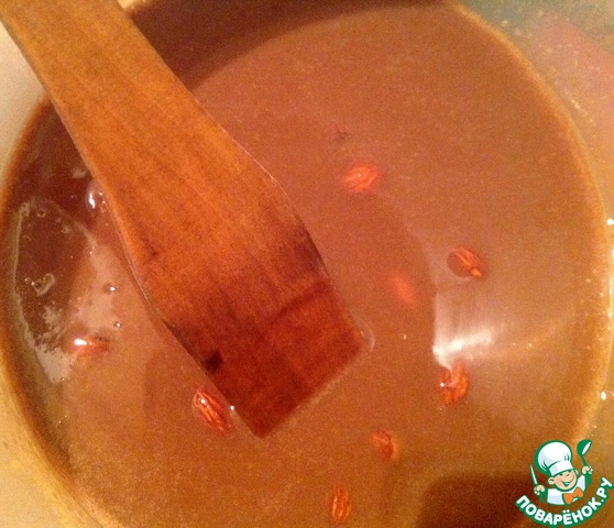 Шоколад (у меня был с орешками) и масло растопить на медленном огне. Добавить крепко заваренный кофе (я взяла 1 ч. л. на 40 мл воды). Снять с огня.
