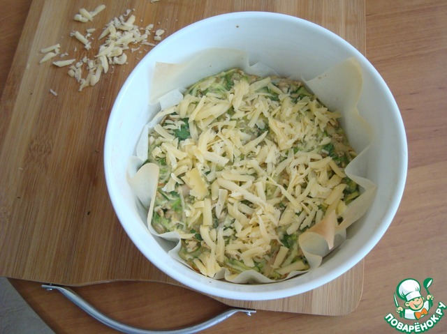 Вытаскиваем из духовки, присыпаем сыром и отправляем ещё на 5 минут при той же температуре.