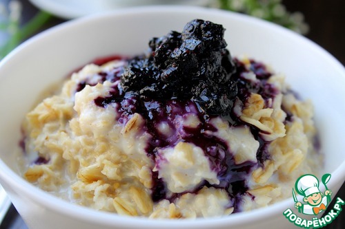 Готовую кашу выложить в тарелку, сверху полить черничным соусом. Приятного аппетита!