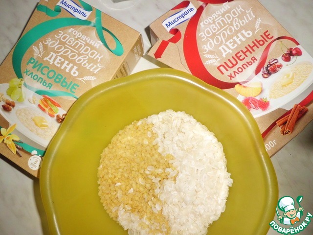 Смешиваем хлопья от "Мистраль" в глубокой посуде.