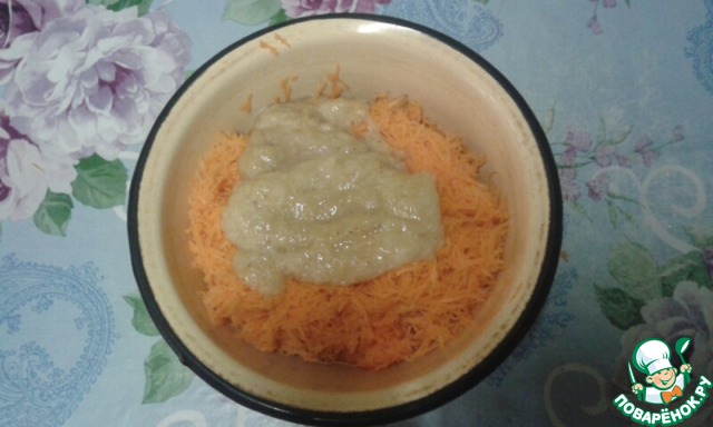Бананы тоже натираем на мелкой тёрке (в результате получается пюре из бананов).