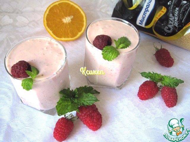 В последнюю очередь добавляем малину. И ещё раз взбиваем коктейль в течении нескольких секунд.