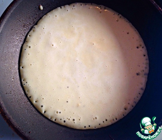 Теперь жарим блинчики на разогретой, смазанной оливковым маслом, сковороде.