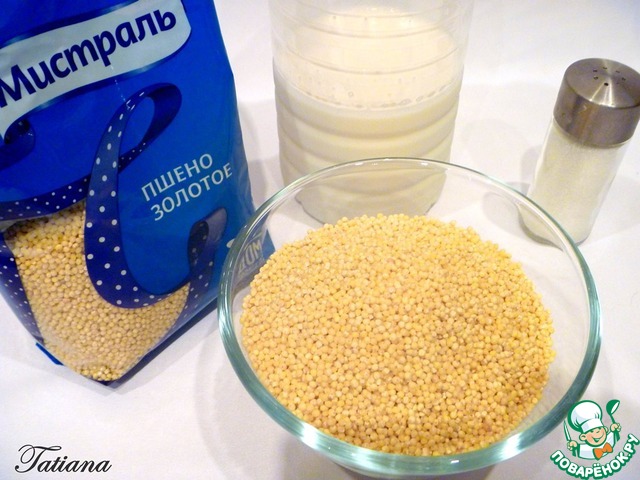 Пшено промойте в горячей воде (до прозрачной воды), горячая вода избавит пшено от горечи и удалит жировую пленку, вскипятите молоко с водой.
