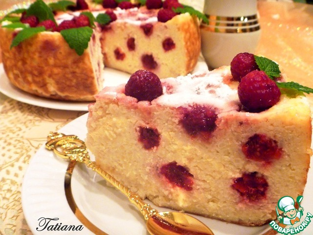 Чашу МВ смажьте сливочным маслом, выложите слоями творожно-пшенную массу и малину (не размораживайте заранее).
