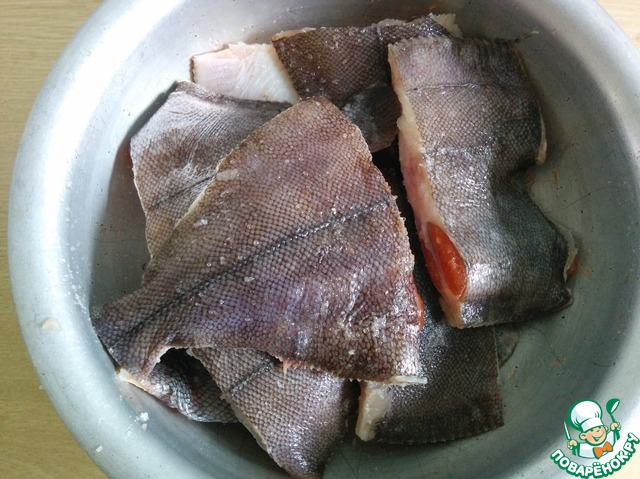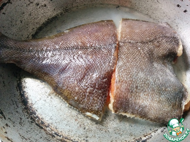 Камбалу помыть, обрезать хвост, плавники, очистить от чешуи (у меня есть специальная "чистилка" для рыбы, но в данном случае она не помогла, поэтому чешую я соскоблила обычным ножом). Если камбала с икрой - икру оставить внутри. Каждую рыбешку разрезаем на 2 части и подсаливаем (не очень сильно).