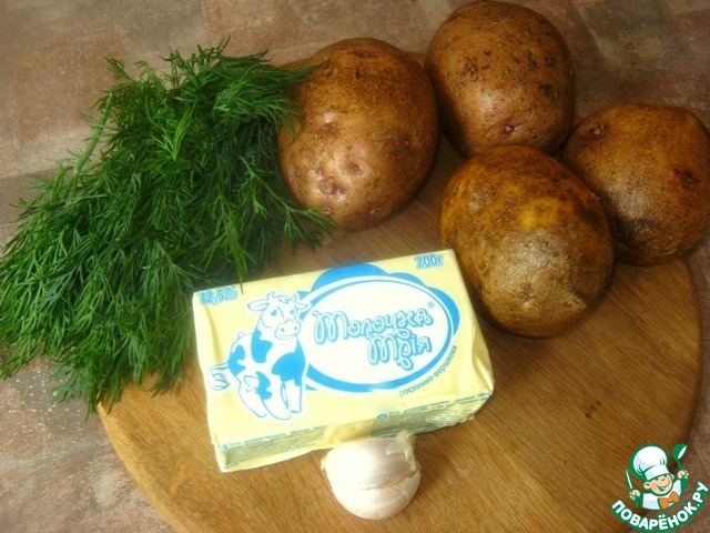 Достать из духовки картошку, горячей начинить смесью масла с чесноком