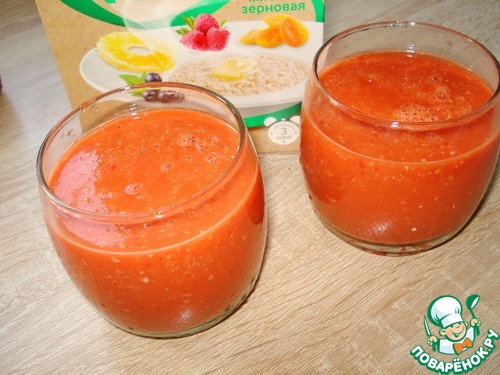 | Собрали последний урожай томатов в этом году, вот из них получился вариант овощного смузи. Это может быть быстрый обед или легкий ужин. |