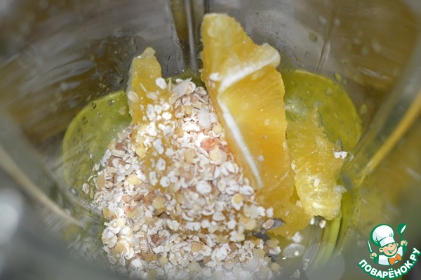 2. В чашу блендера выложить апельсин, хлопья, имбирь, нектарины. Все хорошо взбить.
