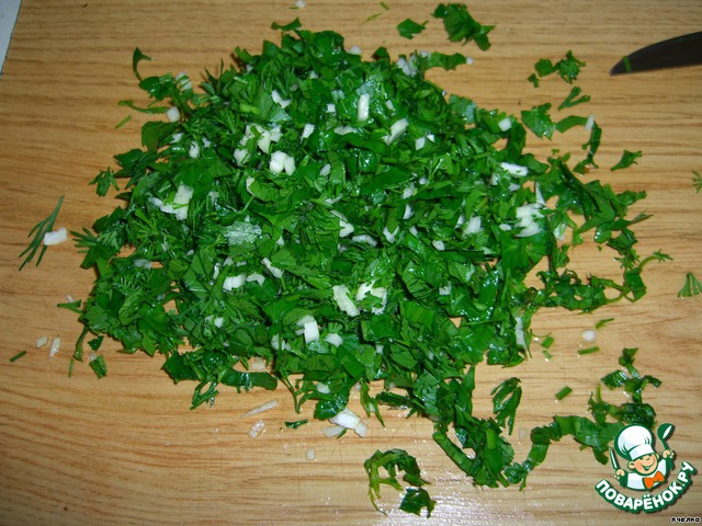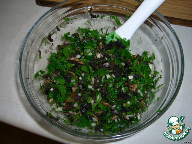 Смешиваем грибы, зелень с чесноком. Наша начинка готова
