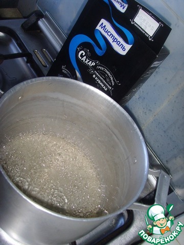 Приготовить и остудить сахарный сироп: растворить сахар в воде и довести до кипения.