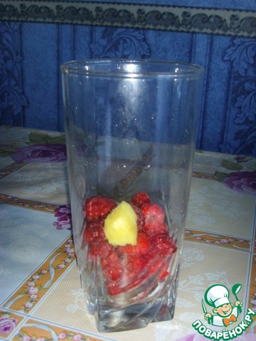 Растолочь в стаканах малину и имбирь