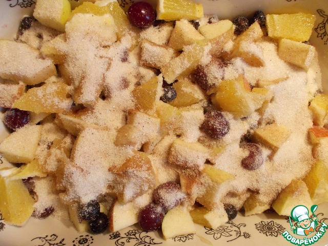 Полученным сахаром засыпать фруктово-ягодную смесь.