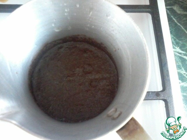 Сверху аккуратно вливаем тоненькой струйкой кофе