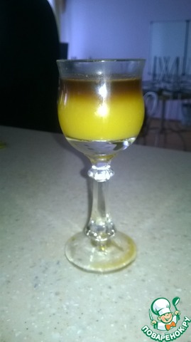 В стопку налейте 10 мл любого сиропа. Потом налейте 30 мл апельсинового сока и ложкой перемешайте.