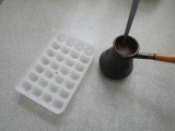Заварить кофе в джезве. Остудить и разлить в формочку для льда.