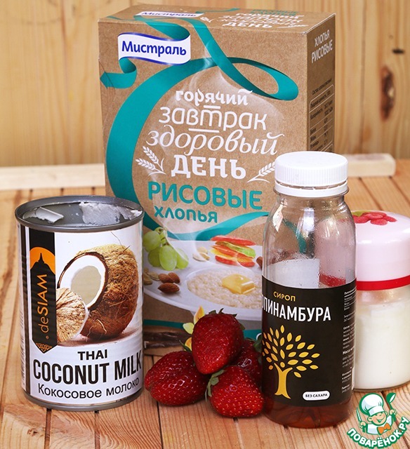Первым делом нужно залить рисовые хопья подогретым кокосовым молоком, чтобы они набухли. Это все же не овсяные, они гораздо более жесткие. Дать постоять хдопьям минут 10. За тем добавляем остальные ингредиенты и взбиваем блендером. Для хорошего вкуса все ингредиенты должны быть холодные.