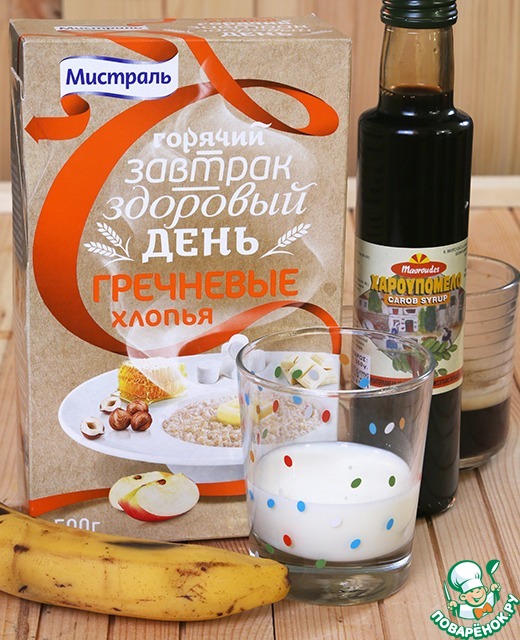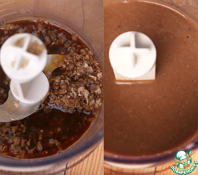 Тут мы гречку заливаем свежесваренным кофе, даем остыть. За тем добавляем остальные ингредиенты (из холодильника!) и взбиваем.