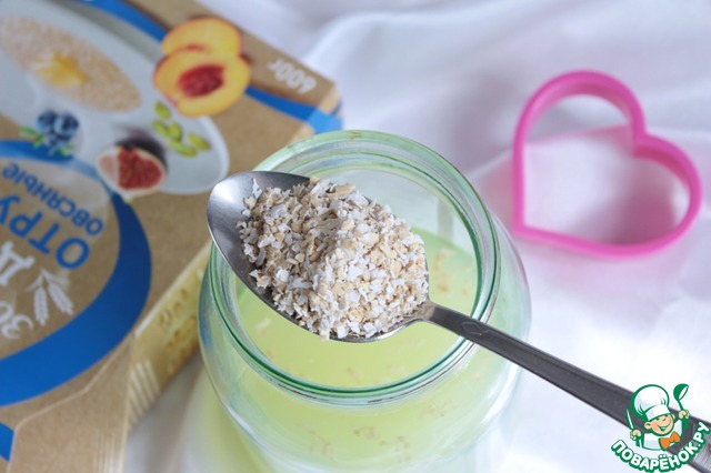 Сыворотку немного подогреть и всыпать для набухания овсяные отруби торговой марки "Мистраль". Тем временем подготовить фрукты.